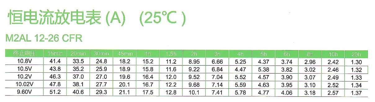 | 额定容量 | 26Ah C20/10.8V |
